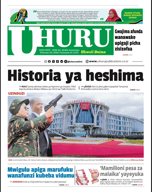 MagazetiHAYA HAPA MAGAZETI YA TZ LEO J'TANO FEB 25,2026 Admin1 month ago01 mins 29 Post navigation Previous: Cadillac Escalade IQ Yatangazwa Kuwa SUV Bora Mwaka 2026Next: MIAMBA YATEMBELEA MWAMBA WA NGORONGORO.
