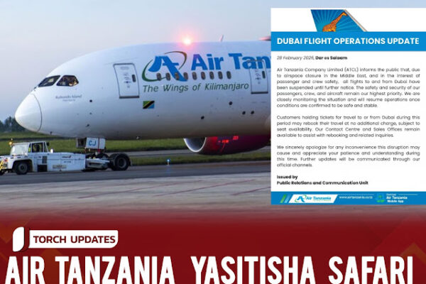 ::::::::::: Kampuni ya Ndege ya Tanzania (ATCL), imetangaza kusitisha kwa muda safari zake za kwenda na kutoka Dubai, kutokana na kufungwa kwa anga la Mashariki ya Kati.  Katika taarifa kwa wateja iliyotolewa leo Februari 28, 2026, kampuni hiyo imesema imesitisha safari hizo hadi itakapotolewa taarifa nyingine na kwamba inaendelea kufuatilia kwa karibu hali ilivyo na…