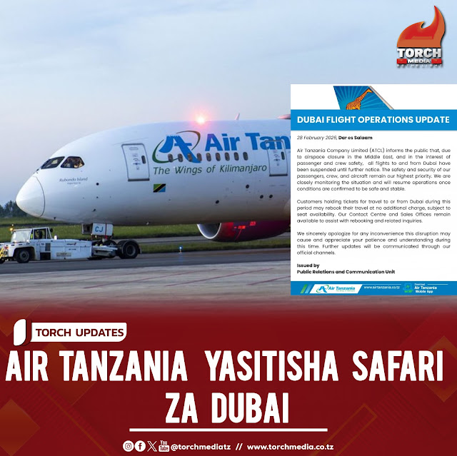 Katika taarifa kwa wateja iliyotolewa leo Februari 28, 2026, kampuni hiyo imesema imesitisha safari hizo hadi itakapotolewa taarifa nyingine na kwamba inaendelea kufuatilia kwa karibu hali ilivyo na mara tu hali itakapothibitishwa kuwa salama na thabiti basi safari hizo zitarejea mara moja.