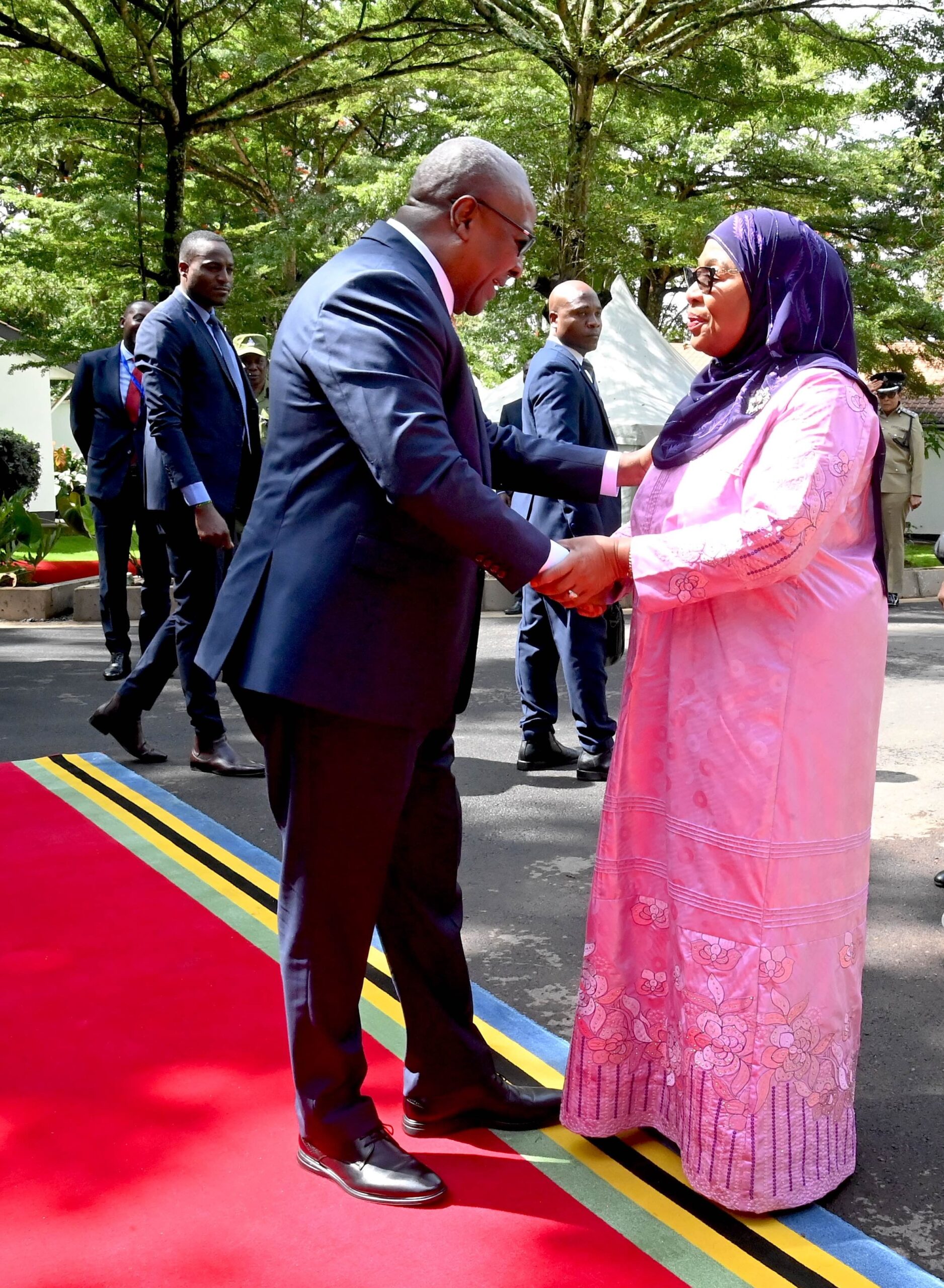 Rais wa Jamhuri ya Muungano wa Tanzania, Mheshimiwa Dkt. Samia Suluhu Hassan akisalimiana na Rais wa Jamhuri ya Ghana Mhe. John Dramani Mahama mara baada ya kuwasili katika Ikulu Ndogo ya Arusha tarehe 02 Machi, 2025. Rais wa Ghana Mhe. Mahama amewasili Mkoani Arusha kwa ajili ya Ziara ya Kikazi, ambapo anatarajiwa kuwa mgeni Rasmi katika Ufunguzi wa Mwaka mpya wa Mahakama ya Afrika ya Haki za Binadamu na Watu, na Sherehe za kumbukizi ya miaka 20 tangu kuanzishwa kwa Mahakama hiyo mwaka 2006.