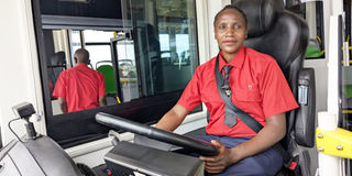 Dereva wa mabasi ya mwendokasi Happness Aloyce akiwa kazini katika safari ya Mbagala- Gerezani jijini Dar es Salaam.