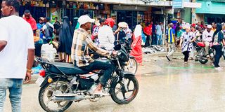 Wafanyabiashara wa mitumba katika mtaa wa Msimbazi na Jangwani eneo la Kariakoo wakiwa wamesimama kikundi kujadili kuhusu zoezi linaloendelea la kuwaondoa katika mitaa hiyo.