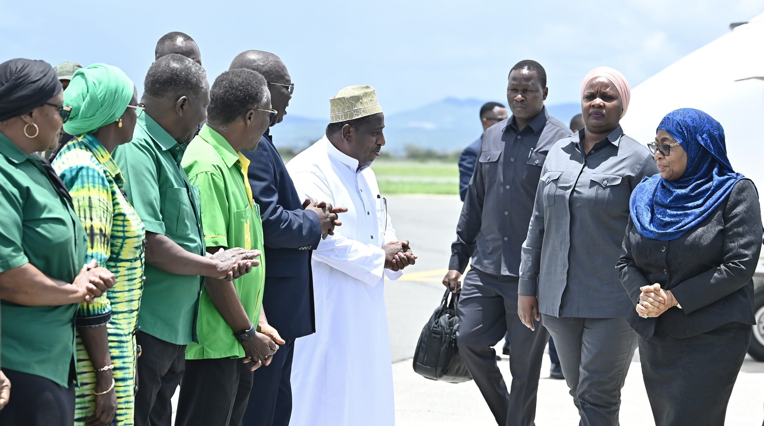 Rais wa Jamhuri ya Muungano wa Tanzania, Mhe. Dkt. Samia Suluhu Hassan akisalimiana na viongozi mbalimbali mara baada ya kuwasili katika Uwanja wa Ndege wa Kimataifa wa Kilimanjaro (KIA) tarehe 06 Machi, 2026. Rais Mhe. Dkt. Samia amewasili Jijini Arusha kwa ajili ya kushiriki katika Mkutano wa 25 wa Kawaida wa Wakuu wa Nchi Wanachama wa Jumuiya ya Afrika Mashariki (EAC) unaotarajiwa kufanyika tarehe 07 Machi, 2026 katika Kituo cha Mikutano cha Kimataifa cha Arusha (AICC).
