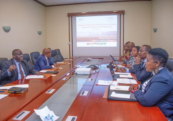 Katibu Mkuu Ofisi ya Makamu wa Rais, Dkt. Richard Muyungi amekutana na kufanya mazungumzo na Ujumbe kutoka Kituo cha Umahiri wa Masuala ya Sayansi na Usimamizi Endelevu wa Ardhi kutoka Nchi za Kusini mwa Afrika (SASSCAL).