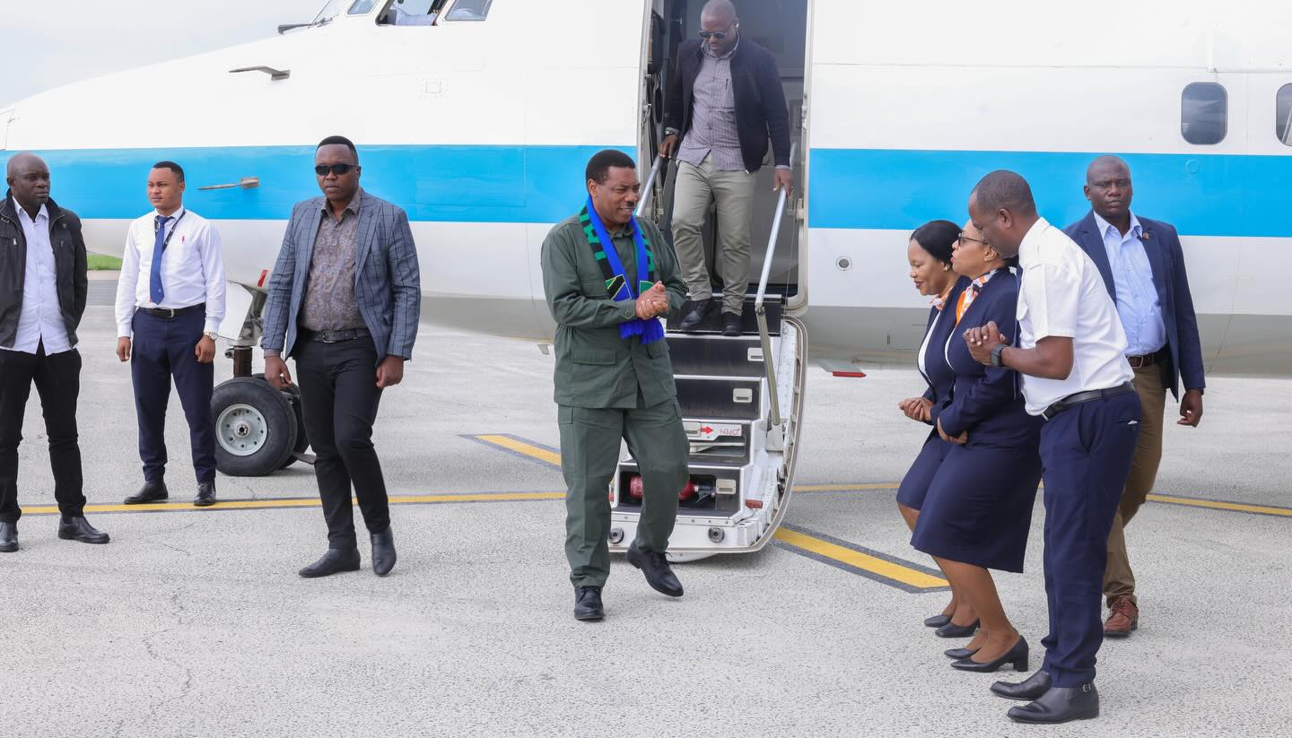 Waziri Mkuu, Dk Mwigulu Nchemba alipokuwa katika ukaguzi wa maendeleo ya ukarabati na uboreshaji wa Uwanja wa Ndege wa Sumbawanga uliopo mkoani Rukwa.