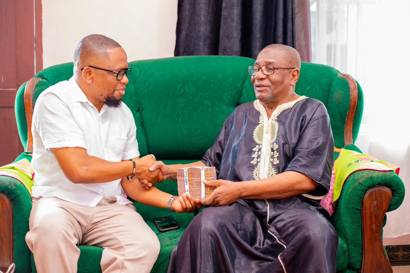 Naibu Waziri Mwinjuma alimkabidhi Mzee Bichuka shilingi milioni 10 taslimu, ikiwa ni mkono wa pole uliotolewa na Rais Samia kwa ajili ya kumtia moyo katika kipindi hiki cha matibabu.