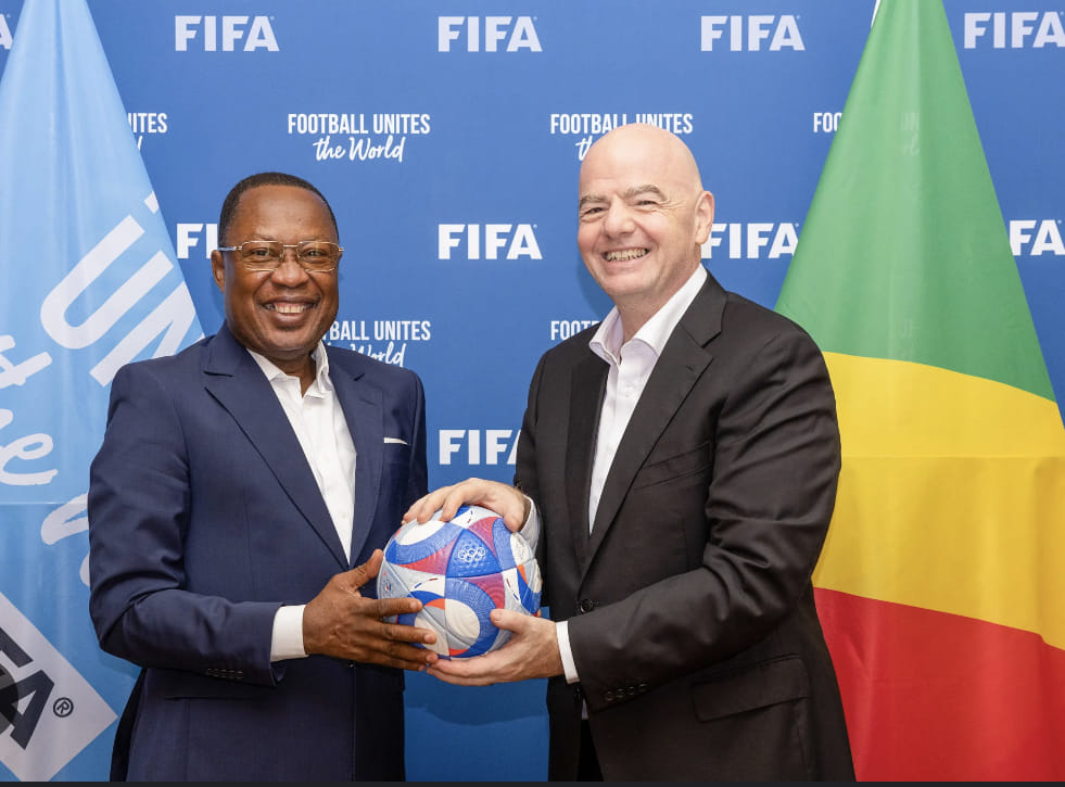 Jean-Guy Blaise Mayolas, Aliyekua Rais wa Shirikisho la soka Kongo Brazzaville (Kushoto), Gianni Infantino rais wa Shirikisho la Kimataifa la Mpira wa Miguu (FIFA)