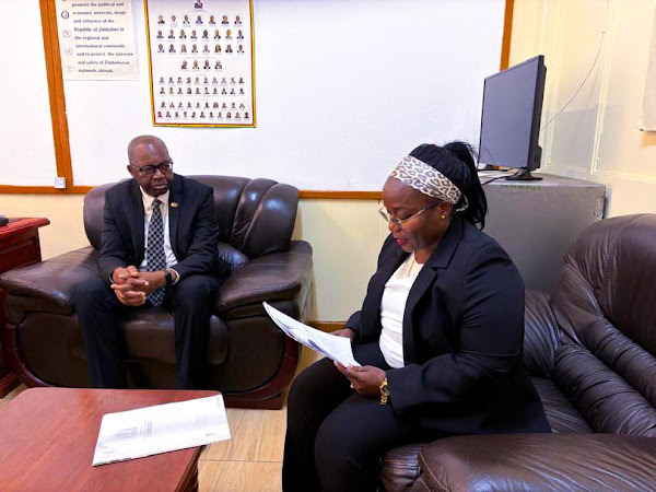Balozi wa Tanzania nchini Zimbabwe, Kamishna wa Polisi (CP) Suzan Kaganda, amekutana na kufanya mazungumzo na Mkurugenzi wa Idara ya Afrika na Asia katika Wizara ya Mambo ya Nje na Biashara za Kimataifa ya Zimbabwe, Bw. Mqabuko Dube.