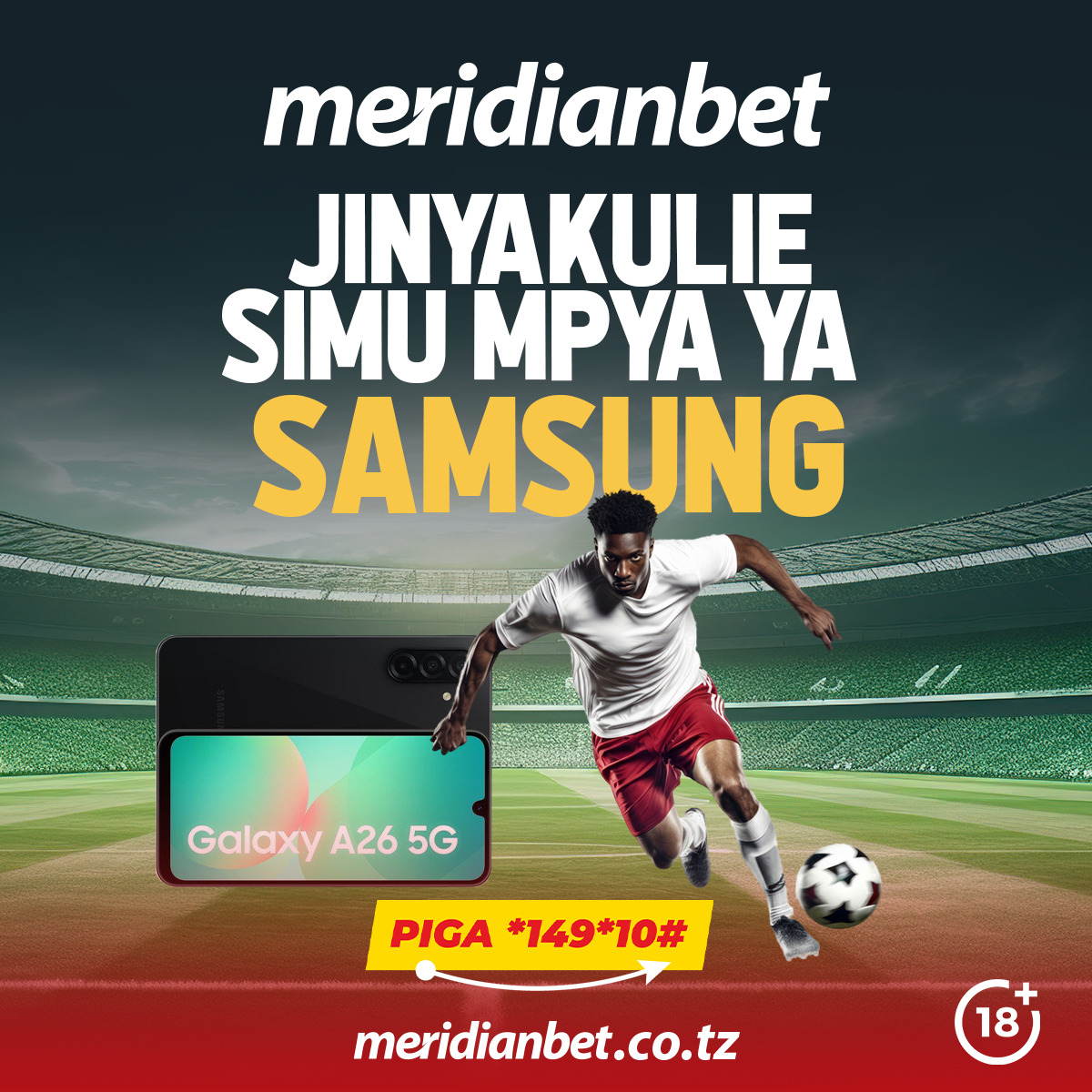Katika msimu huu wa burudani na ushindani mkali ndani ya ulimwengu wa soka, Meridianbet imewasha moto mpya unaowapa wachezaji wote sababu ya kuongeza hamasa wanapotazama na kubashiri mechi za Ligi. Kupitia ofa yake kabambe, sasa unaweza kuweka bashiri kuanzia shilingi 5,000 tu na kuingia moja kwa moja kwenye droo ya kujishindia simu mpya na ya kisasa kabisa Samsung A26.