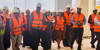 Wajumbe wa Kamati ya kudumu ya Bunge ya Elimu, Utamaduni na Michezo wakikagua mojawapo ya majengo yaliyojengwa kupitia mradi wa HEET katika Chuo Kikuu Ardhi.