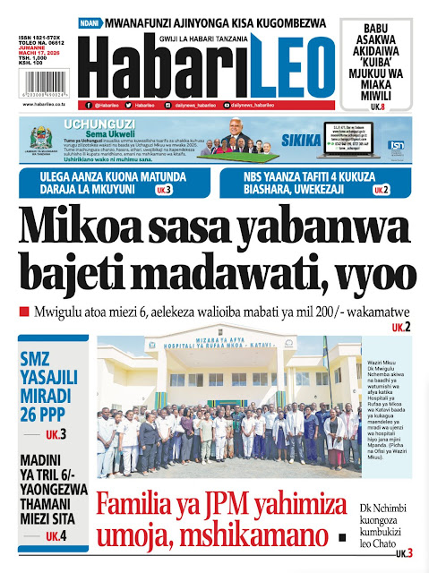 MagazetiMAGAZETI YA TZ LEO J'NNE MACHI 17,2026 Admin3 weeks ago01 mins 24 Post navigation Previous: Roy Keane amkataa Michael Carrick kuwa kocha wa kudumu wa Manchester UnitedNext: Pengo la sayansi kati ya wavulana na wasichana linazibika
