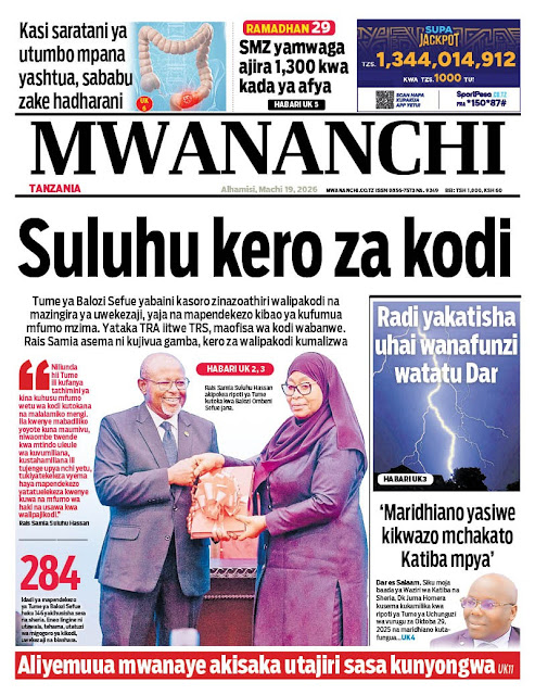 MagazetiMAGAZETI YA TZ LEO ALHAMISI MACHI 19,2026 Admin3 weeks ago01 mins 19 Post navigation Previous: Yanga yafuata winga mwingine DR CongoNext: LORI LATEKETEA KWA MOTO MOROGORO, MTU MMOJA ASADIKIKA KUFARIKI