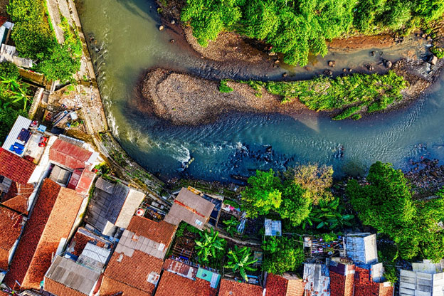 Mfano mmoja ni kutoka Bonde la Mto Cimanuk–Cisanggarung huko Java Magharibi, Indonesia. Ukuaji wa haraka wa miji, mabadiliko ya matumizi ya ardhi na mabadiliko ya hali ya hewa yanaongeza hatari za mafuriko wakati wa msimu wa mvua na uhaba wa maji wakati wa kiangazi.