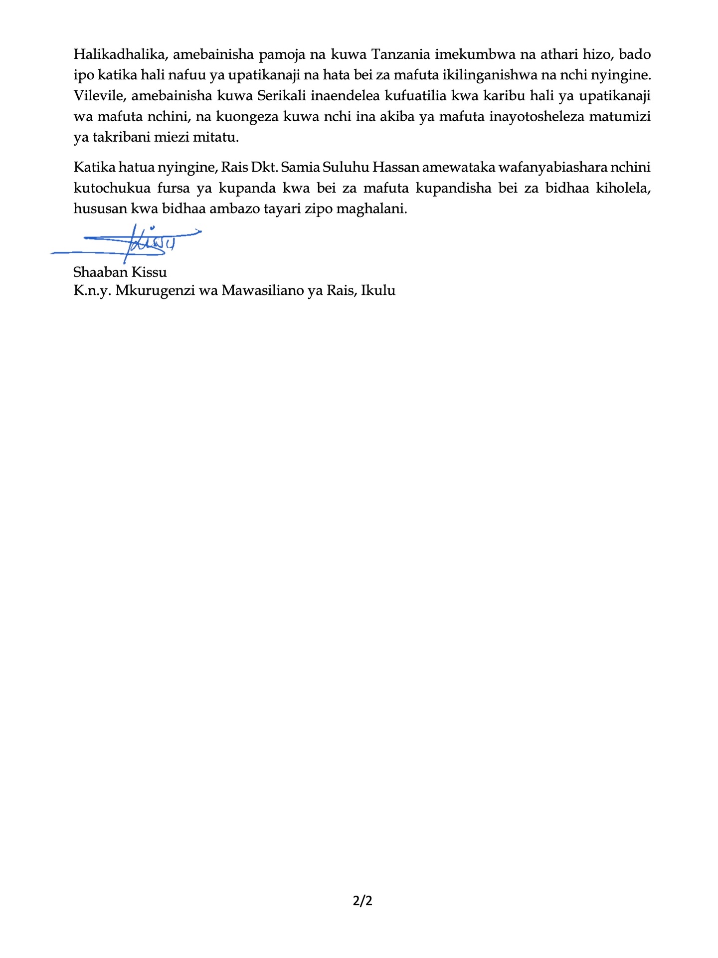 Amefafanua kuwa ongezeko la bei ya mafuta linatokana na hali ya soko la kimataifa na si maamuzi ya Serikali ya Tanzania, huku akibainisha kuwa bado bei ya mafuta nchini iko chini ukilinganisha na mataifa mengine.
