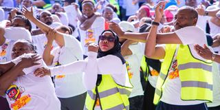 Mkurugenzi Msaidizi wa Elimu ya Afya kwa Umma kutoka Wizara ya Afya, Dk Rahma Hingora akiwa katika mazoezi ya viungo