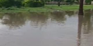 Mto Mbeza ukiwa umefurika kutokana na mvua zilizonyesha kwa saa tisa Korogwe.