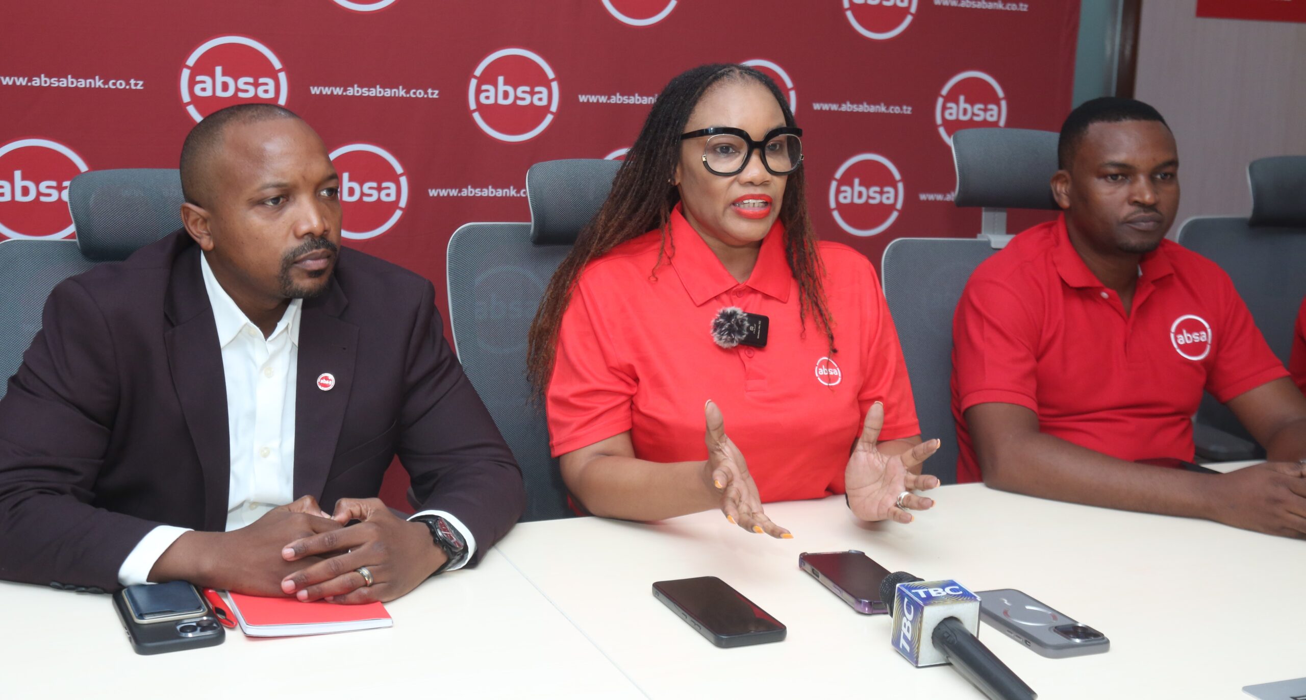 Mkurugenzi wa Wateja Binafsi wa Benkiya Absa Tanzania, Bi. Ndabu Swere (katikati), akizungumza na waandishi wa habari wakati wa uzinduzi wa kampeni ya “Jisogeze na Mkopo wa hadi TZS 200m”, inayolenga wafanyakazi wa sekta binafsi na umma, jijini Dar es Salaam leo. Pichani kushoto ni Bw. Aron Luhanga, Mkurugenzi wa Masoko na Mahusiano na kulia ni Bw. Heristraton Genesis, Mkuu wa Mikakati na Bidhaa za Wateja Binafsi.