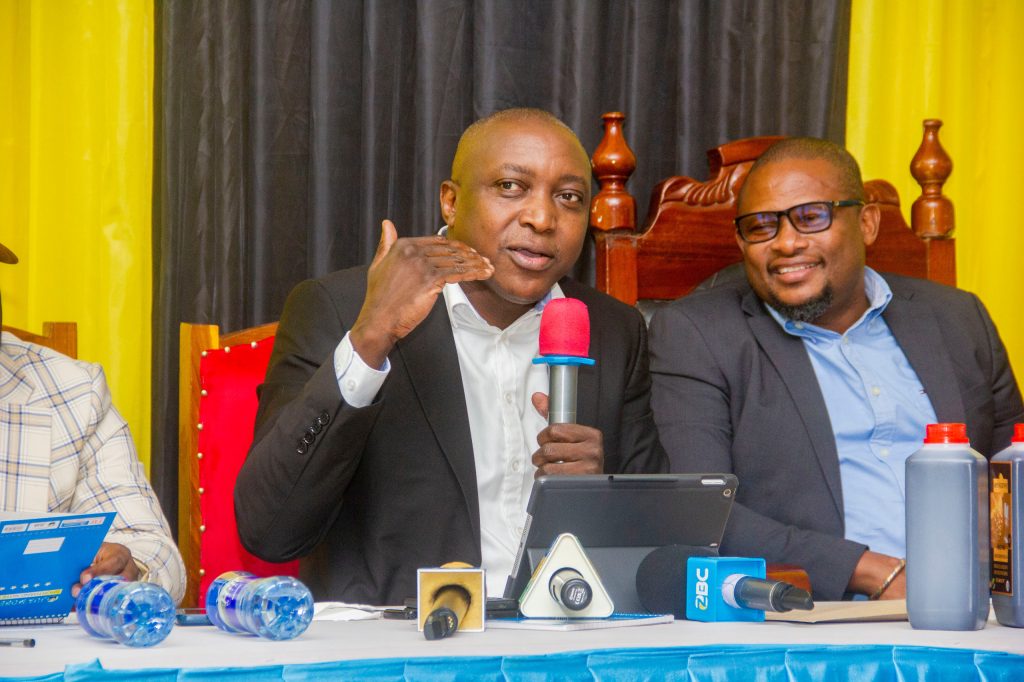 Afisa Mtendaji Mkuu wa Wakala wa Usajili wa Leseni (BRELA) Bw Godfrey Nyaisa,akitoa ufafanuzi kwa Madiwani wa Halmashauri ya Dodoma wakati wa mafunzo kwa madiwani hao juu ya Huduma zitolewazo na BRELA katika kuwezesha biashara nchini. Mafunzo hayo yametolewa na BRELA yaliyofanyika leo 15,2026 jijini Dodoma.